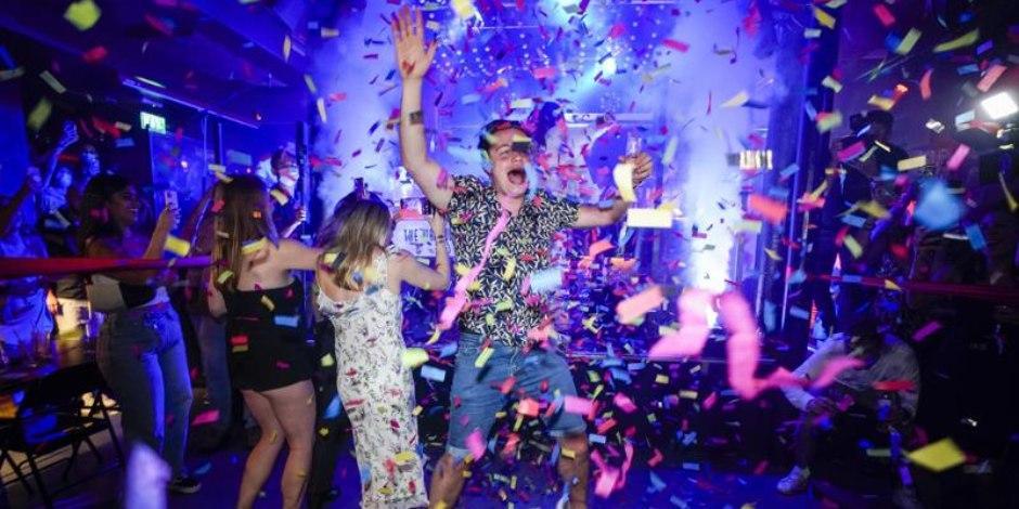 Los asistentes a las discotecas acudieron a uno de los primeros eventos de música en vivo libres de normas desde que comenzó la pandemia el año pasado, bailando durante toda la noche y regocijándose en la interacción humana luego de que Inglaterra levantó la mayoría de las restricciones por el COVID-19 a medianoche en Londres.